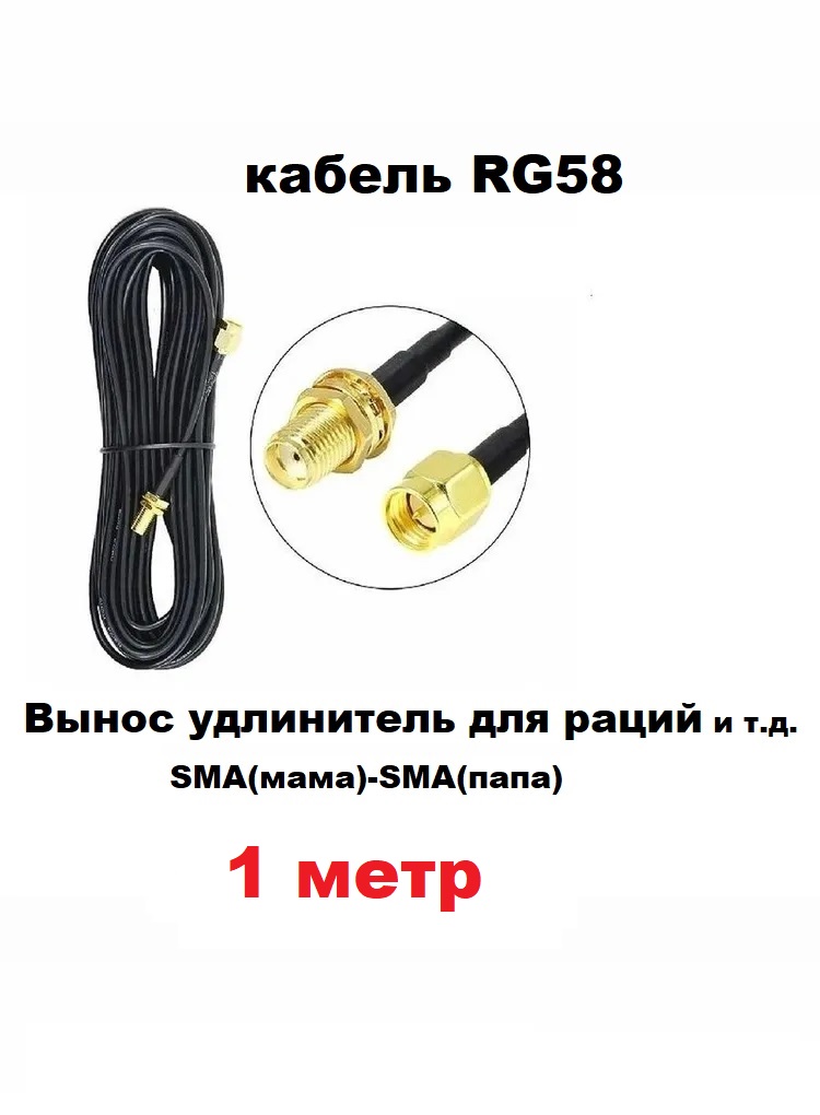 Антенный удлинитель (вынос) для радиостанции кабель RG58 SMA(мама-папа) 1 метр
