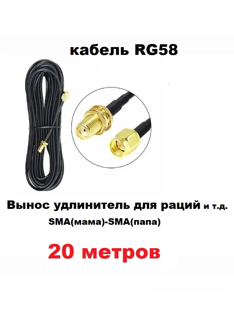 Антенный удлинитель (вынос) для радиостанции кабель RG58 SMA(мама-папа) 20 метров